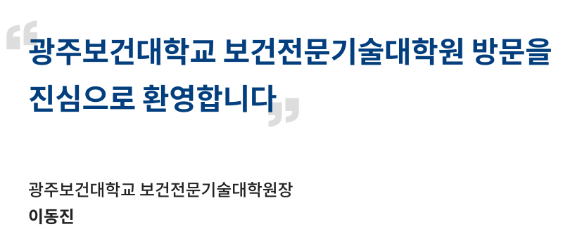 여러분의 열정과 도전이 광주보건대학교 보건전문기술대학원에서 새로운 미래를 함께 설계하는 힘이 되길 기대합니다.